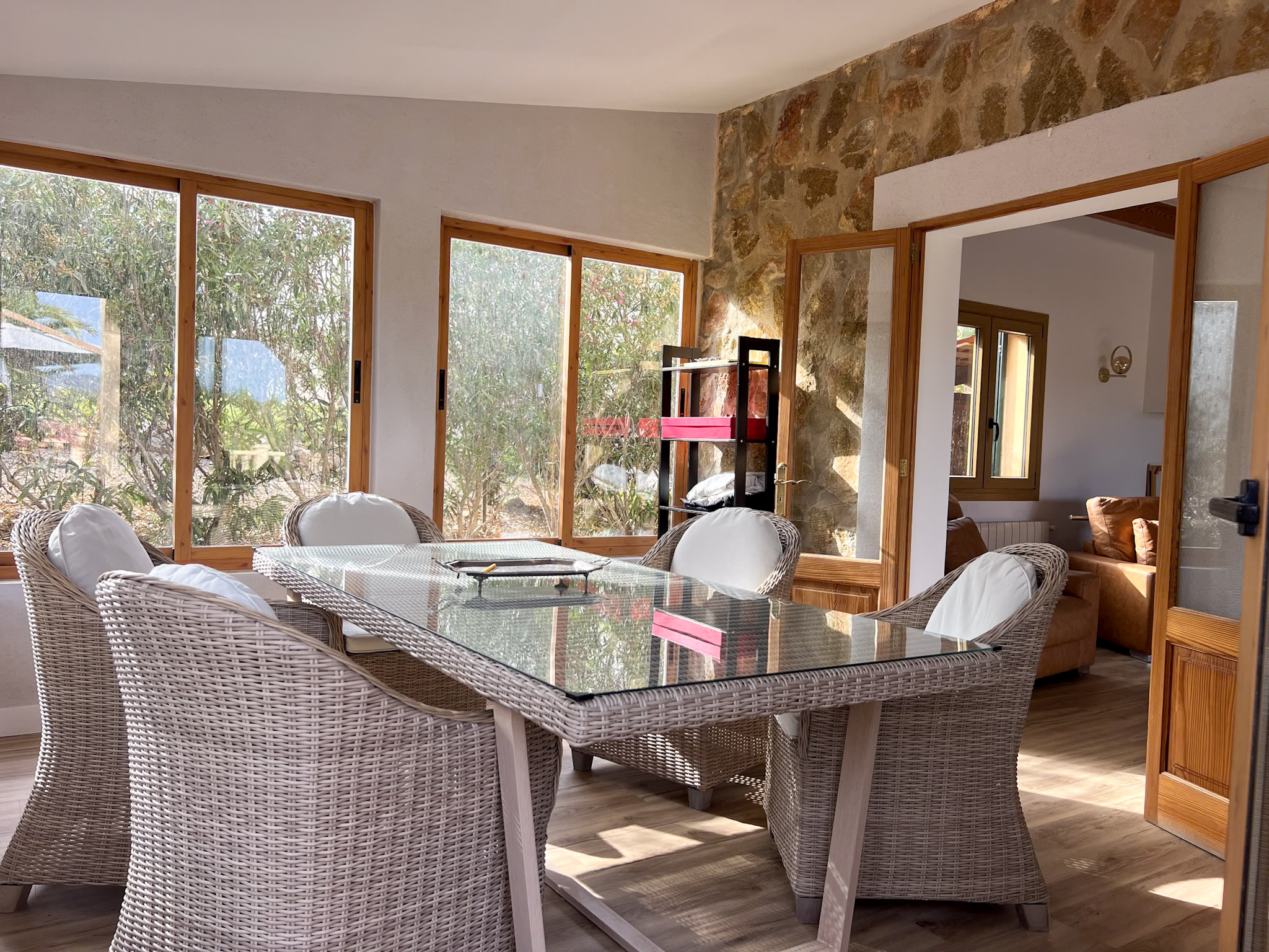 Set in an elevated position above the picturesque village of Es Capdellà, this exceptional home combines traditional Mallorcan charm with refined modern living. The property enjoys sweeping views of the surrounding mountains and countryside, offering a sense of privacy and tranquility just moments from the heart of the village.