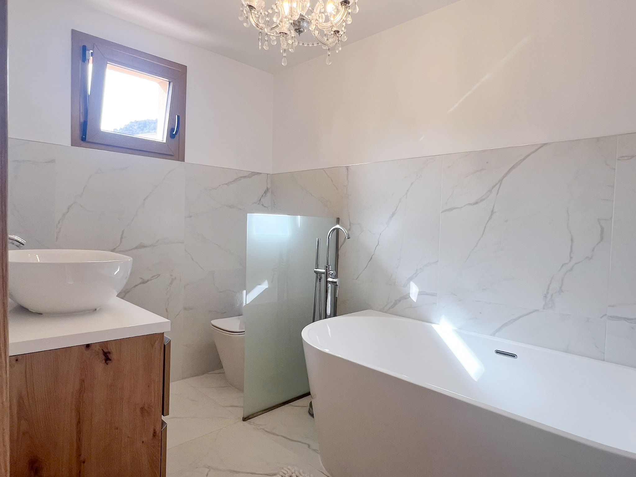 Inside, the residence unfolds across spacious, light-filled levels connected by two elegant staircases — a distinctive architectural feature that adds both character and flow. Original stone walls, wooden beams, and natural finishes have been carefully preserved, complemented by contemporary comforts throughout.